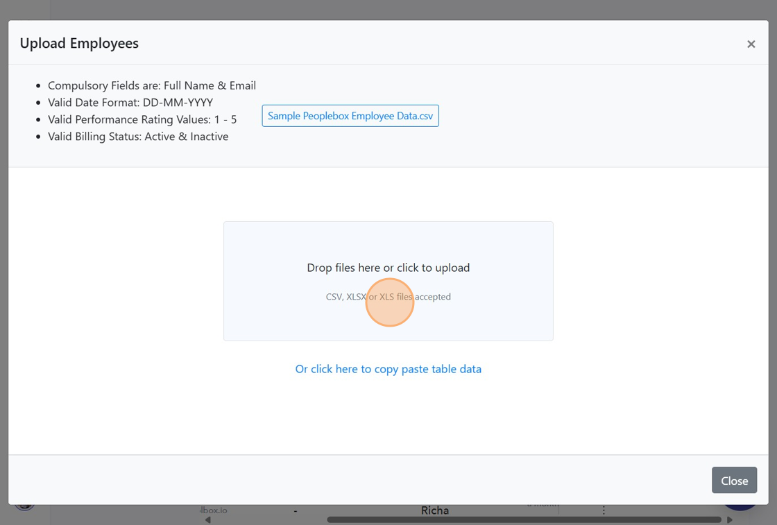 - Upload the CSV file to add multiple employees.