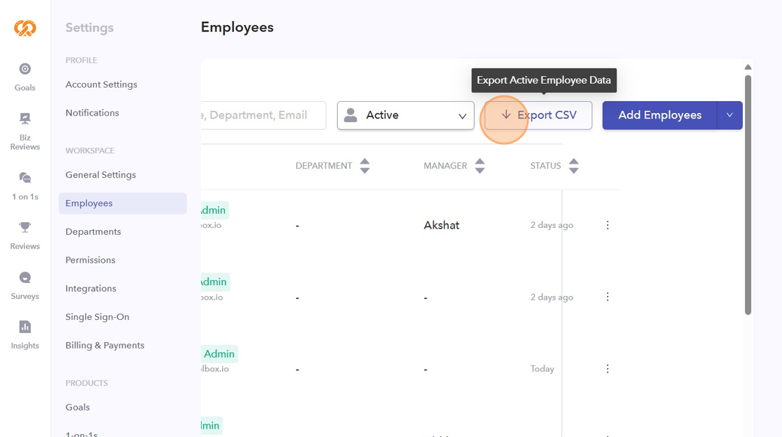 - You can obtain the active employee data from the tool by choosing the "Export CSV" option.