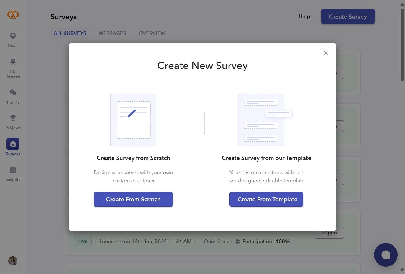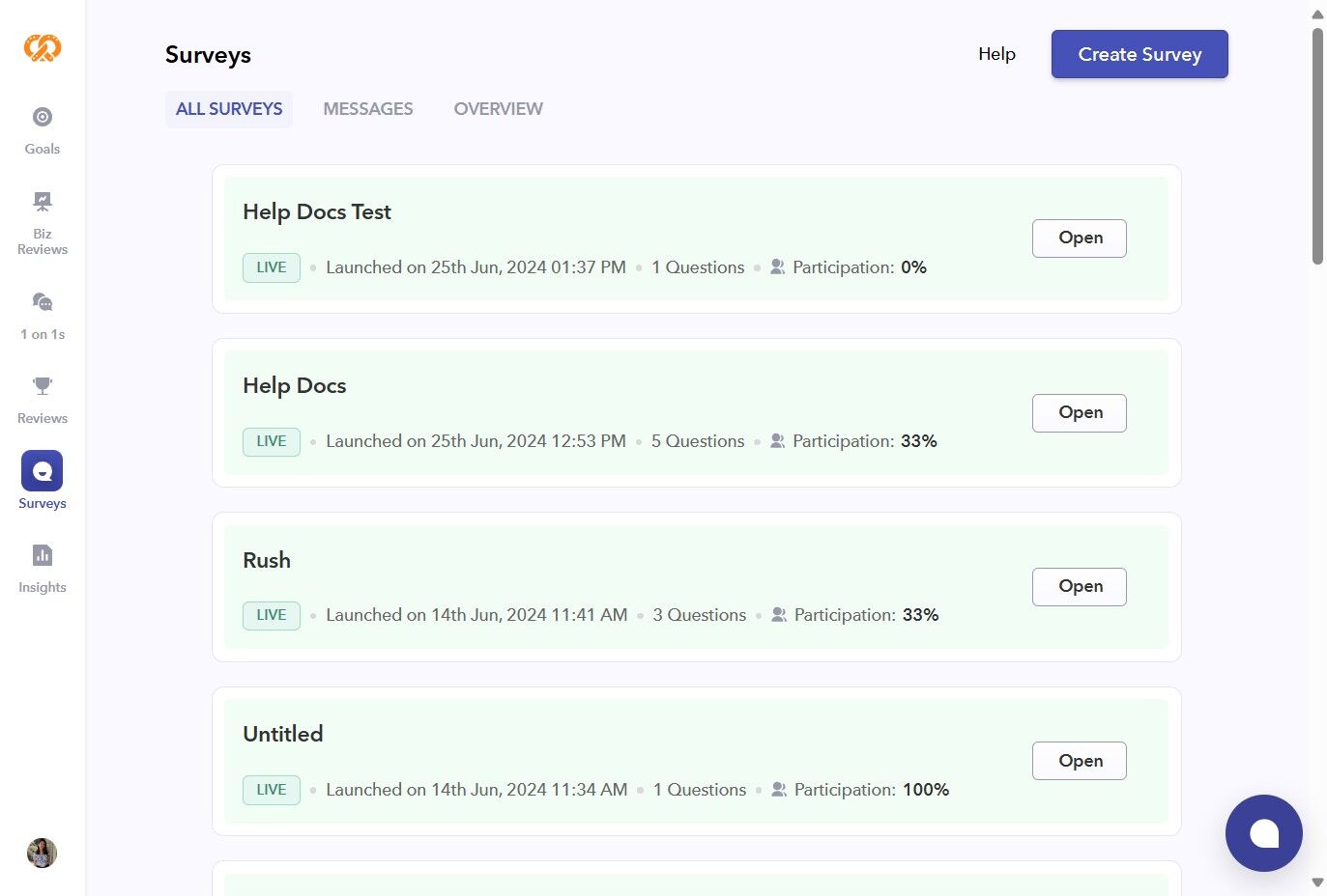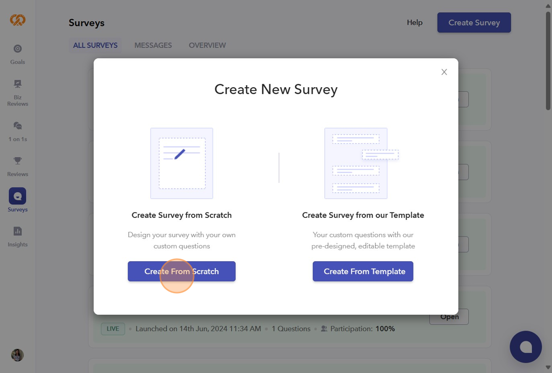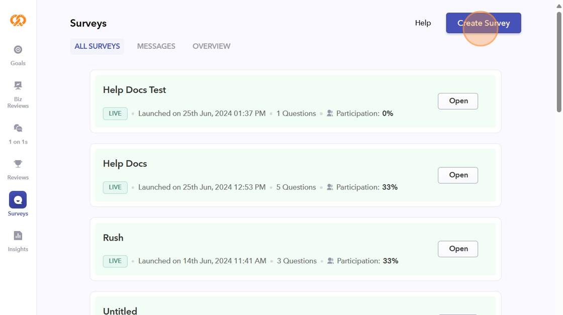 - On the left sidebar of your dashboard, click on the "Surveys" icon.