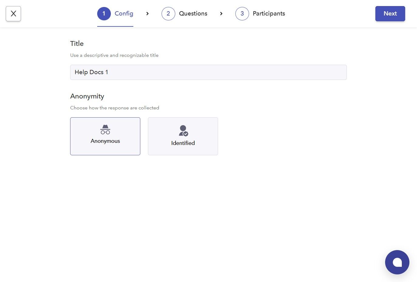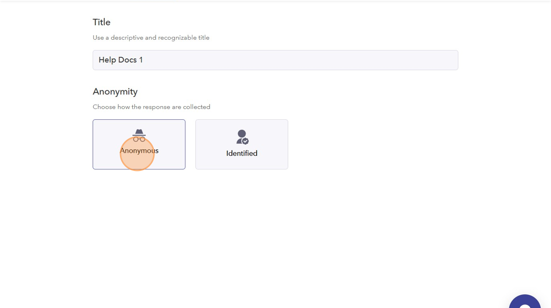 - Give a Title to the survey. You can choose to make it anonymous or identified.