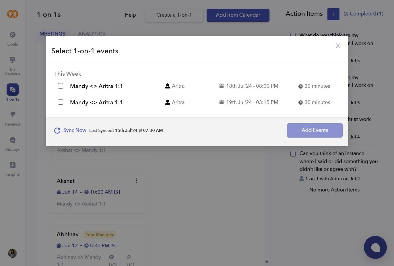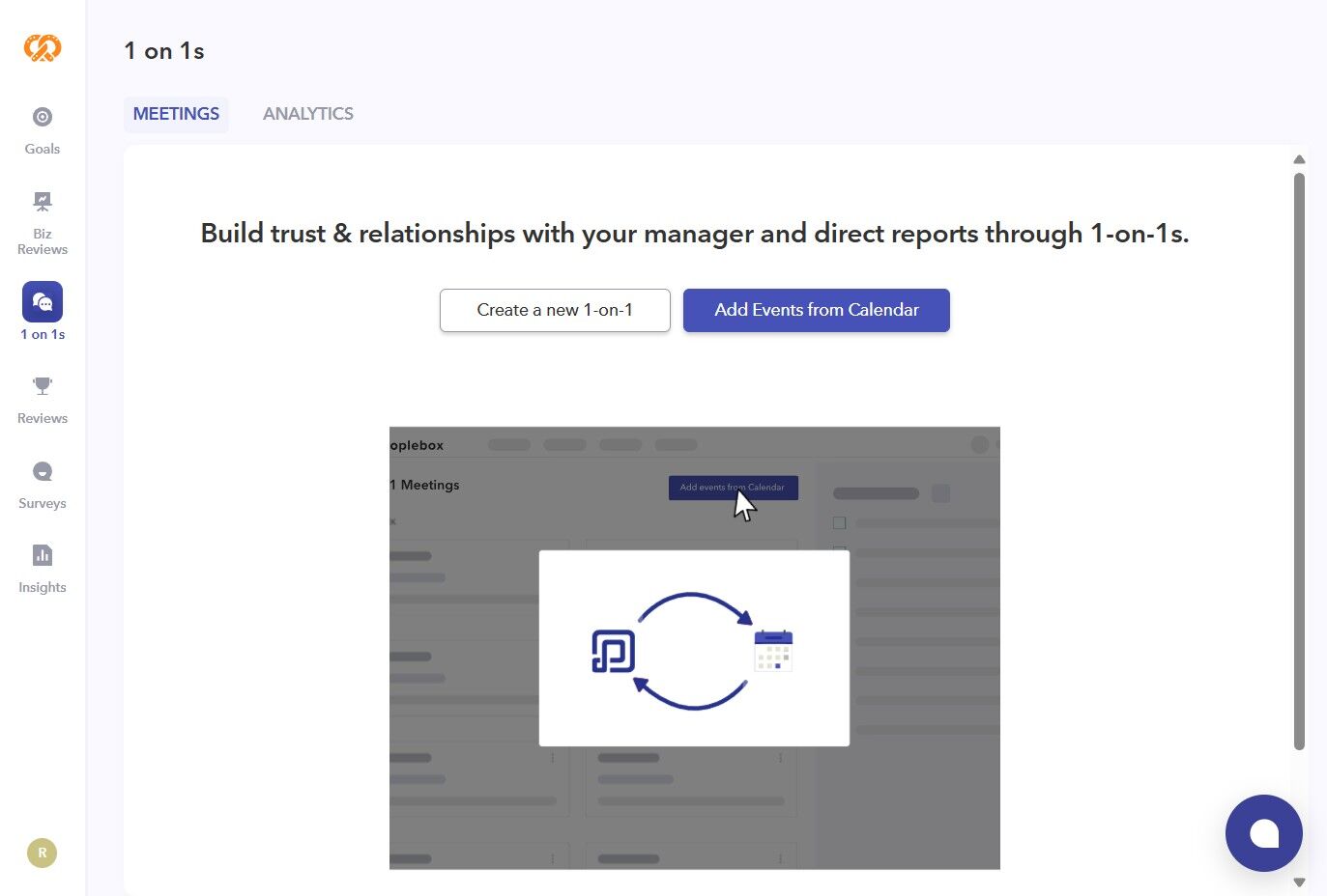 Calendar integration is important. It helps Peoplebox to sync 1-on-1 meetings from your calendar and add it to Peoplebox.