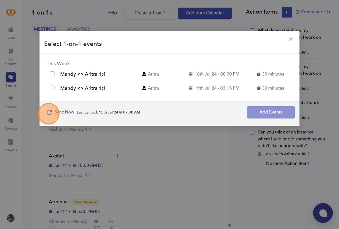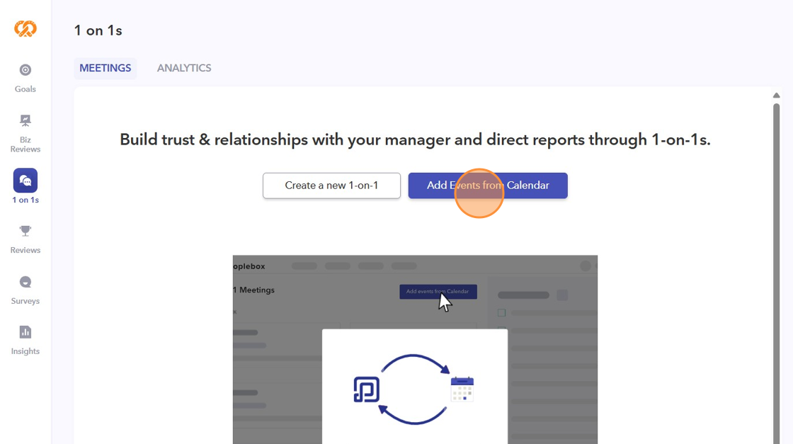- You can sync meetings that are already in the calendar with your Peoplebox tool.