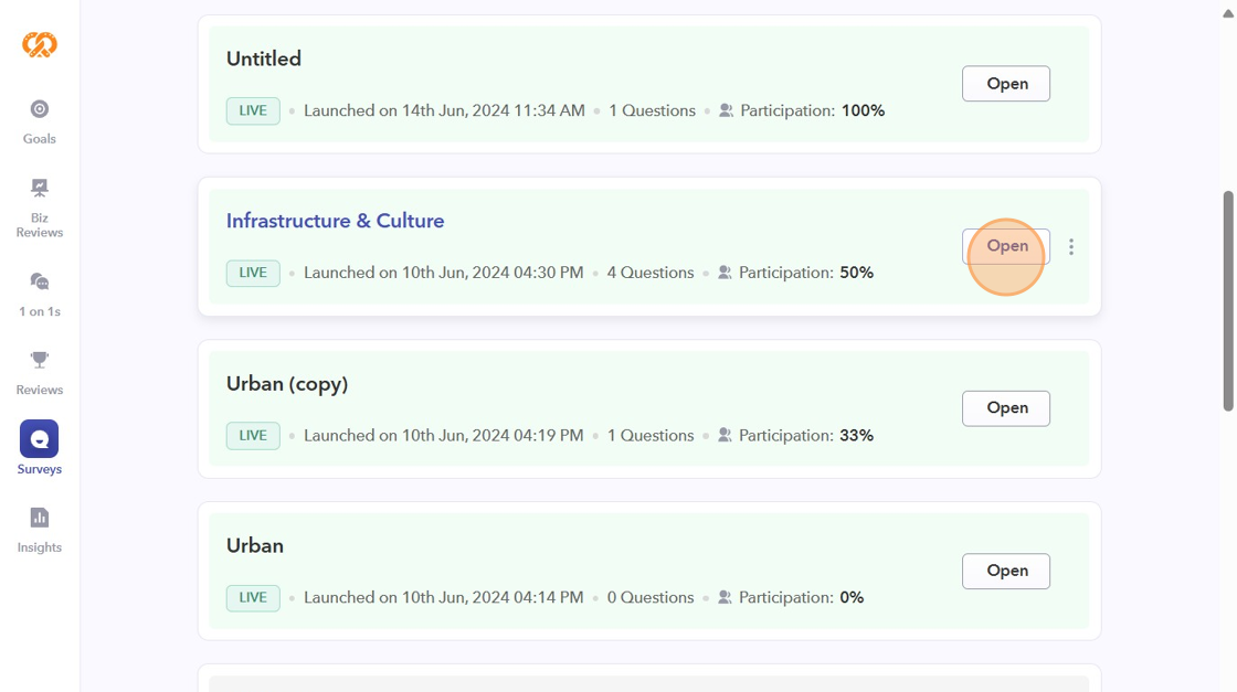 - On the left sidebar of your dashboard, click on the "Surveys" icon.
