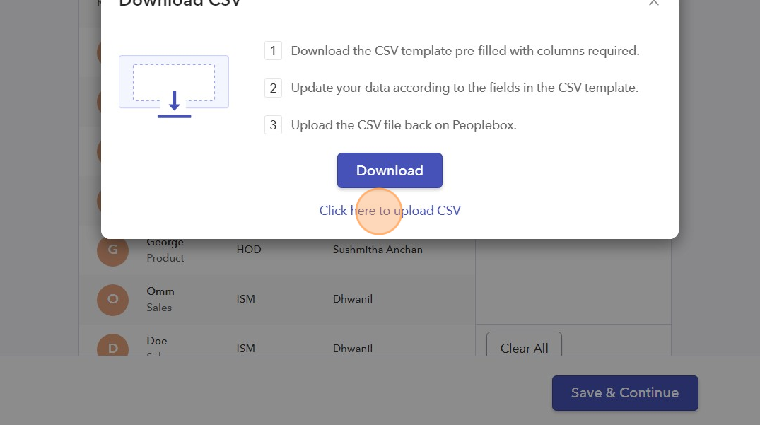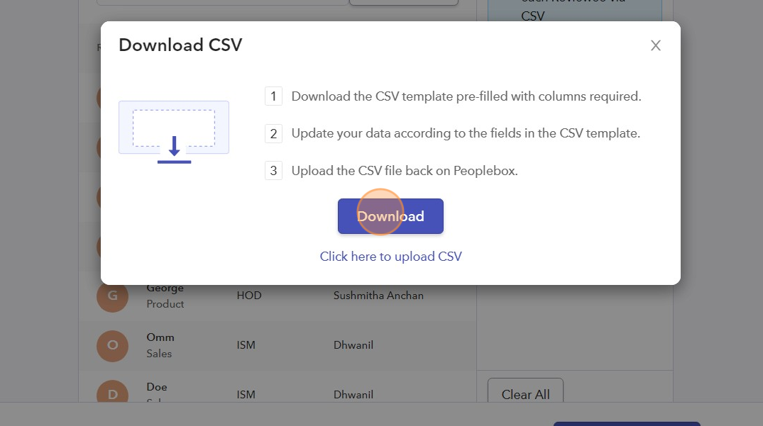 - Click "Download" to get the pre-filled CSV template, then update your data accordingly.
